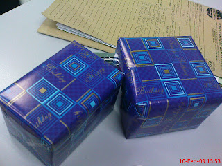 Untuk bulan Febuari ni sepatutnya sambut untuk 4 orang staff sekali.memandangkan salah seorang datenya jatuh pada tahun lompat makanya sambut untuk 3 orang jer la...Mala , Steven dan AhTat.Pada tahun ni ada improvement sikit.Kalu sebelum ni cuma ada kek jer...tapi kali ni kita orang kasi hadiah sekali.Almaklum ler staff dah ramai...so collection duit pon meriah gitew.